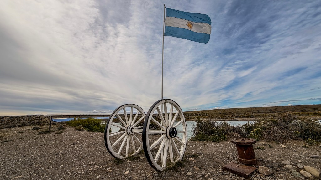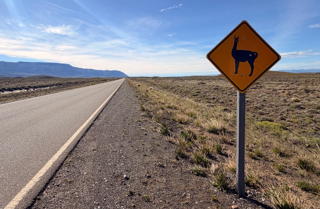 Leaving El Chalten, the 110km route goes west to east, on a very quiet road, with very few bends, before swinging south onto Ruta 40, Patagonia’s legendary arterial road. A quick stop at the outskirts of town for a group photo before hitting the road.