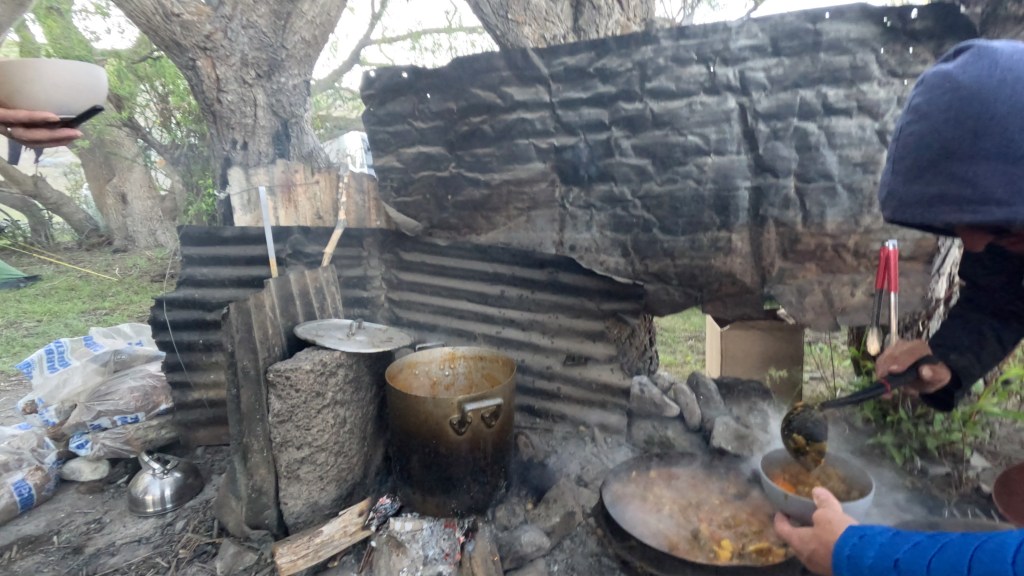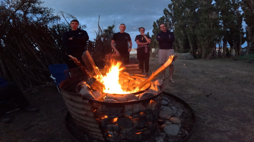 As we got ourselves sorted, the Argentinian crew got to work preparing a fire and chopping vegetables.