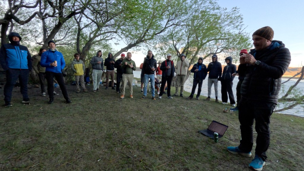 It was a wonderful evening, we drank beer & wine by the river side as Rob gave us the briefing for the next day..