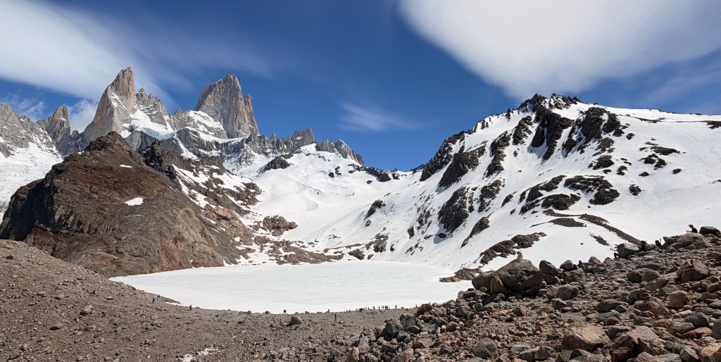 Our return loop took us past two stunning lakes, Lago Madre & Lago Hija (mother & daughter) before bringing us via another close up with Fitzroy, some more incredible glacial scenery and a stunning ridgeline, affording amazing views across this magical landscape.