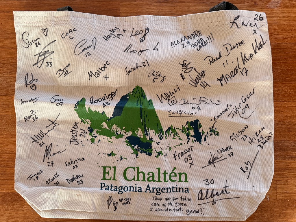 My favourite souvenir of the trip, a tote bag signed by participants and crew.